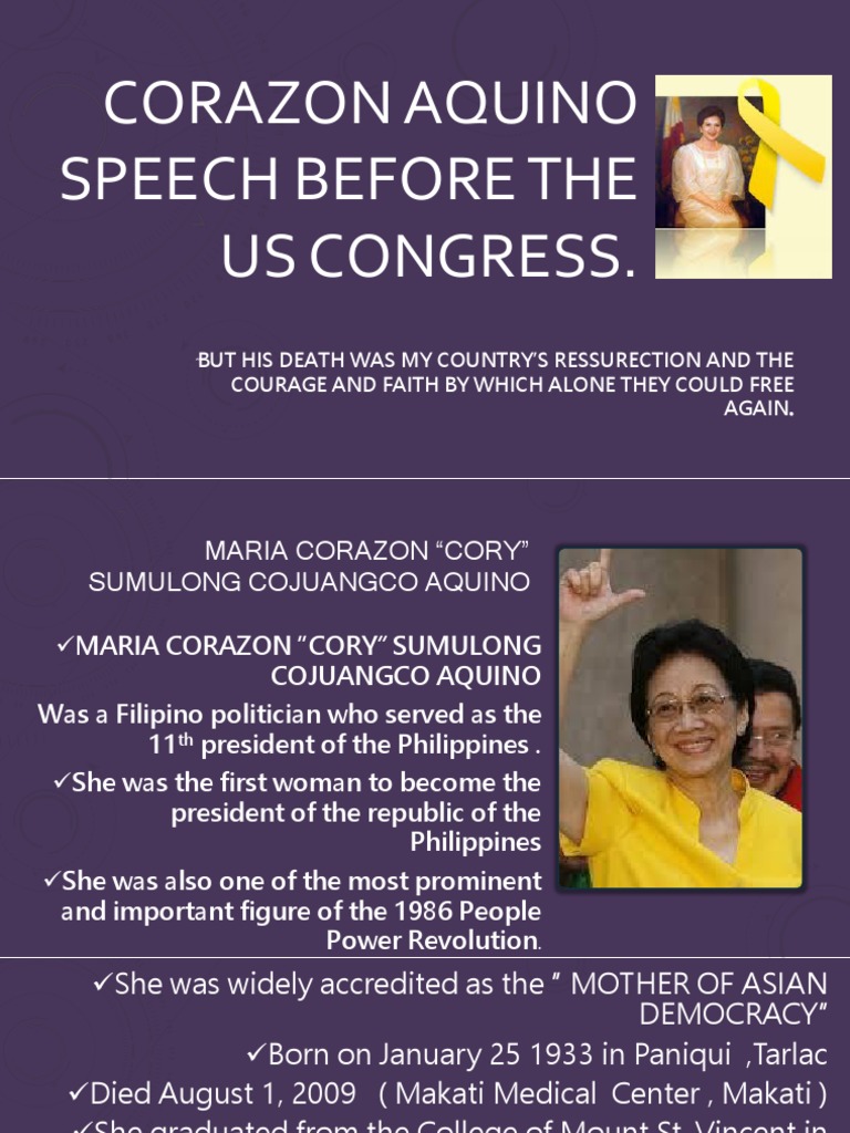 The speech of corazon aquino was influenced by 4. But let me suggest a thing or two. Cite specific line from the speech. Without the right values in the people, a democracy is only a confederacy of fools. cory aquino, the president of the philippines from 1986 to 1992, was the focus. People interested in corazon aquino speech also searched for.